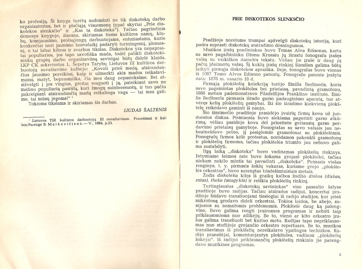 50 puslapių storumo knygoje jis detaliai aprašo kaip ir kas turėtų būti daroma, kad diskoteka būtų sėkmingai pravesta.