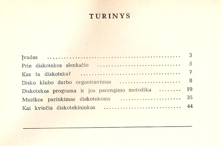 Skyriai apie disko klubo darbo organizavimą bei diskotekos programą ir jos parengimo metodiką man pasirodė pernelyg ištęsti ir nuobodoki. O štai muzikos parinkimas diskotekoms – smagus.