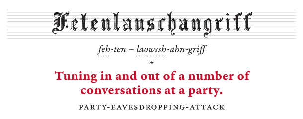 Anglų kalboj jau seniai yra prigiję nemažai vokiškų žodžių, pvz. zeitgeist, doppelgänger, wanderlust ar schadenfreude. Prancūzai savo grupes užvadina Gesaffelstein. Tad ze džermans, puikiai suvokdami savo kalbos išskirtinį grožį ir dainingumą, skuba siūlyti globalizuoti kitus naujadarus.